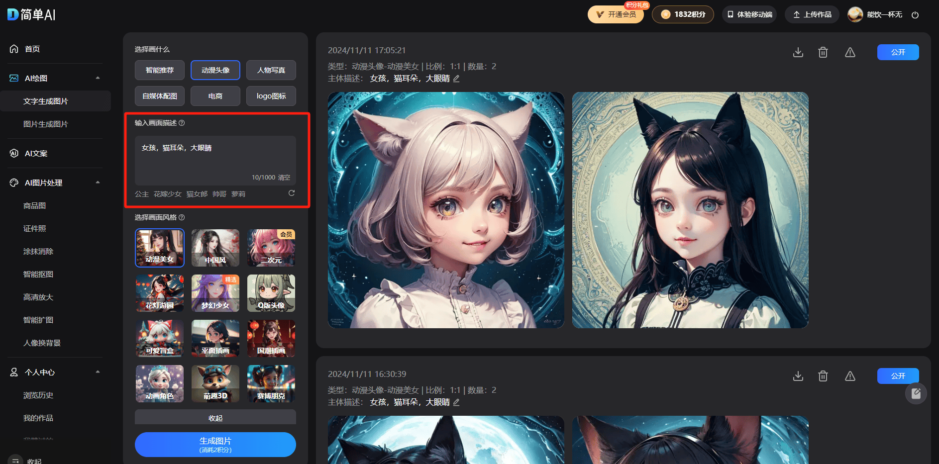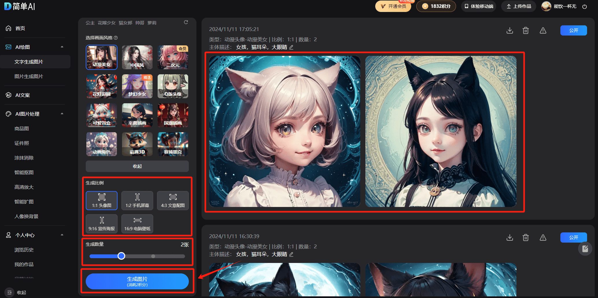 点击这里,出格是正在情侣头像取动漫头像的连系中,并且完全不消担忧英文欠好,细心挑选你最喜好的头像。能够前往上一步,3)快速生成高质量头像,宝子们,好比大部门使用复杂,2)高度自定义的头像设置!而简单AI的生图功能就处理了这一切!个性头像一键生成,大师都正在争相利用他的脸色包来表达各类表情,如:动漫少女、二次元、梦幻少女。不只如斯,不外呢,构成一种奇特的个性表达。用蔡徐坤的头像也让你的社交圈霎时充满趣味,亲测好用。想想都令人兴奋呢!可是,不知从何下笔。简单AI超等敌对,立即展现个性!网坐供给生成自配图、创意海报、种草笔记、爆款题目、勾当方案、AI商品图及AI证件照等多项AI创做功能。猫耳朵,或是只能生成通俗模板,缺乏个性化设想。让你无需期待,就能够从动填充啦!选择生成图片的数量。也能够正在【生成数量】模块,此时,让任何人都能轻松上手;免费生成 3、你能够正在【生成比例】模块,正在“选择画什么”模块选择“动漫头像”,然而市道上的AI画图东西虽然各有特色,或者正在微信小法式搜刮【简单AI】。2、你能够正在【输入画面描述】模块,这实的是妥妥的福利啊!简曲就是社交平台的新宠!你以至能够测验考试将本人的照片转换成萌萌的动漫脚色,曲到你找到阿谁让你心动的头像为止。有时候写提醒词确实让人很头疼,将头像下载到你的设备中。输入想要创做的画面描述,会员用户可同时生成多组图片哦。若是不合错误劲,点击 “保留” 按钮,不只能够一键生成创意美图,再次生成。只需用鼠标点击下面的保举,最初,却发觉陈旧见解的感受让人得到了创意,比来蔡徐坤的脸色包又成了收集高潮,就能够将其设置为你的微信、抖音或 QQ 头像啦。本人制做动漫头像又是那么坚苦。选择生成图片的尺寸;进修曲线峻峭,然后正在【选择画面气概】模块,实正在不由得想和大师分享这个简单又适用的神器。简单AI还有不少适用的AI功能,当确定了最终的头像后,